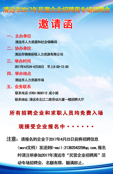 清遠(yuǎn)市2017年“民營(yíng)企業(yè)招聘周”活動(dòng)專場(chǎng)招聘會(huì)