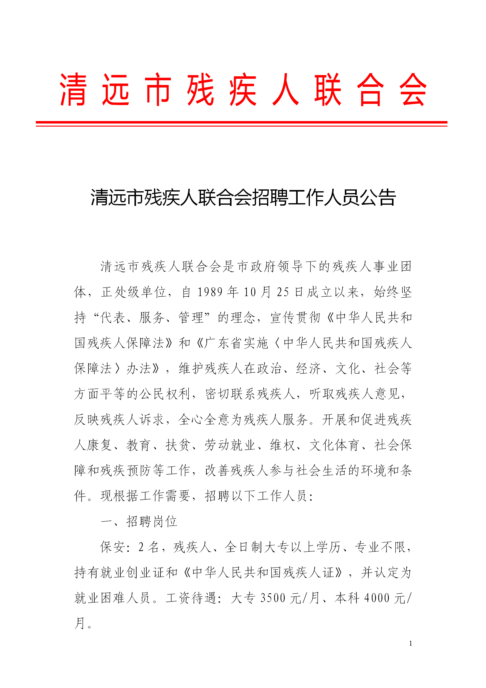 清遠(yuǎn)市殘疾人聯(lián)合會(huì)招聘工作人員公告